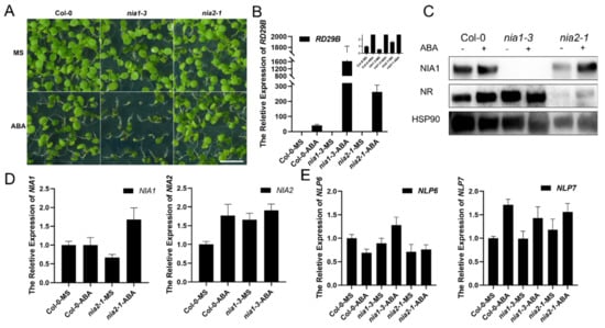 2.1. Mutation of NIA1 Is Hypersensitive under ABA Treatment