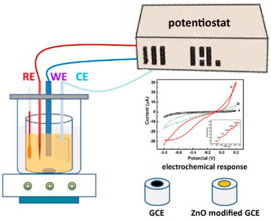 Schematic illustration of the equipment used for analysis with an electrochemical sensor. Reprinted with permission from [130].