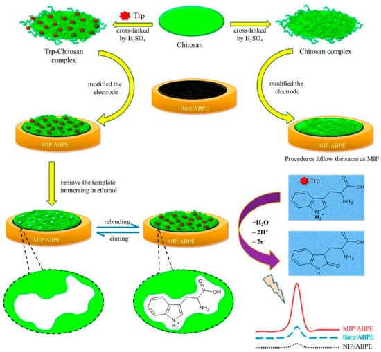 - Tian, Y.; Deng, P.; Wu, Y.; Ding, Z.; Li, G.; Liu, J.; He, Q. A Simple and Efficient Molecularly Imprinted Electro-chemical Sensor for the Selective Determination of Tryptophan. Biomolecules 2019, 9, 294. [Google Scholar] [CrossRef]