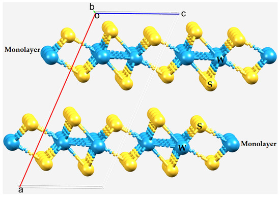 We have also limited our study to providing insight into the nature of the interfacial bonding in the 2H phase of the WCh2 crystals. This phase is semiconducting, and stable at room temperature. Reports show that another phase, the 1T phase, is highly unstable and converts back into the 2H phase with time and a variation in temperature. Metastable 1T(1T′) phases require higher formation energy compared to the thermodynamically stable 2H phase; thus, in standard chemical vapor deposition and vapor transport processes, the transition metal dichalcogenide materials normally grow in the 2H phases [15,119]. The crystal structure of the 2H phase of WS2 is shown in Figure 1.