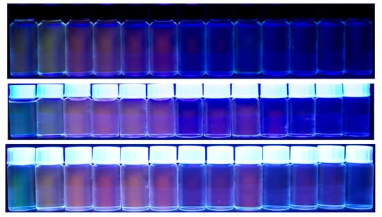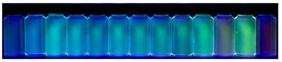 For UV–vis and fluorescence measurements, the investigated compounds were dissolved in acetonitrile at a concentration of 1.19 mM and were diluted to 2.38 × 10−5 M and 4.76 × 10−6 M in the solvents in interest. The spectra were processed using Spectragryph software [].