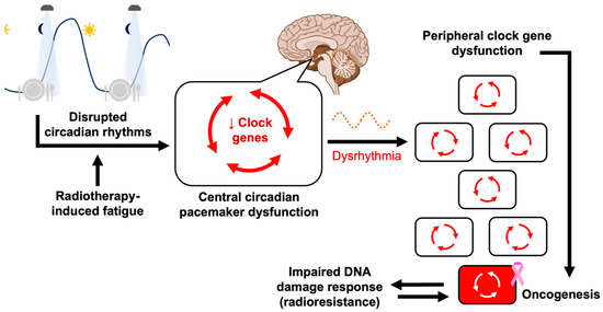 The emerging field of chronoradiotherapy examines biological relationships between circadian regulation and cellular radiation responses in order to improve the therapeutic index of radiation. To date, there is limited preclinical and clinical data that suggest that altering circadian mechanisms could be used to improve outcomes. Preclinical evidence demonstrates that an organism’s response to radiation will vary across its circadian period, i.e., model animals demonstrate circadian radioresistance and radiosensitivity [129]. In human xenograft models, chrono-modulated radiotherapy was noted to improve tumor control, and it demonstrated a synergistic effect with other cytotoxic therapies [106].