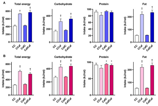 - Mucellini, A.B.; Goularte, J.F.; Da Cunha, A.C.D.A.; Caceres, R.C.; Noschang, C.; Da Silva Benetti, C.; Silveira, P.P.; Sanvitto, G.L. Effects of exposure to a cafeteria diet during gestation and after weaning on the metabolism and body weight of adult male offspring in rats. Br. J. Nutr. 2014, 111, 1499–1506. [Google Scholar] [CrossRef] [PubMed][Green Version]