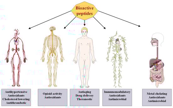 Akbarian, M.; Khani, A.; Eghbalpour, S.; Uversky, V.N. Bioactive Peptides: Synthesis, Sources, Applications, and Proposed Mechanisms of Action. Int. J. Mol. Sci. 2022, 23, 1445. https://doi.org/10.3390/ijms23031445