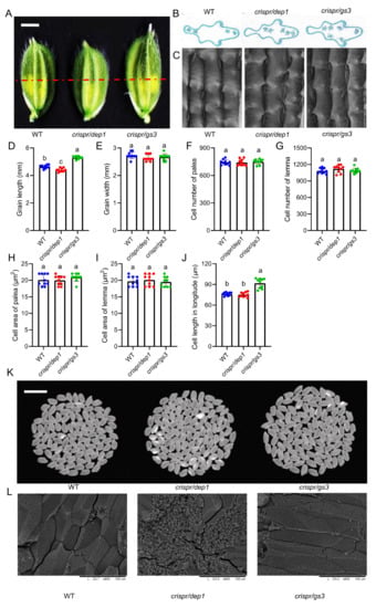 2.2. The Grain Changes of DEP1 and GS3 Mutants