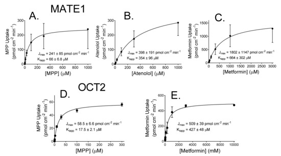2.1. Kinetics of MATE1 and OCT2-Mediated Transport