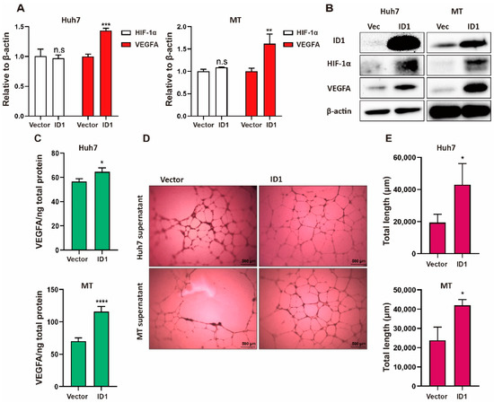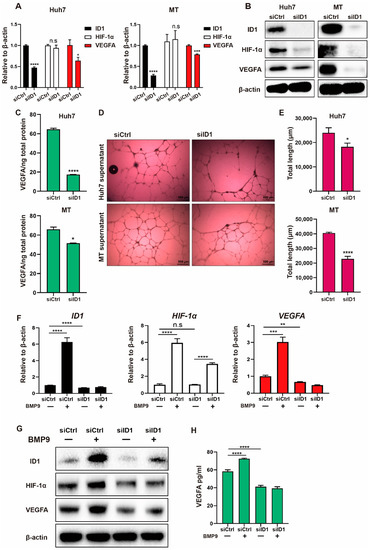 2.3. BMP9-ID1 Signaling Promotes VEGFA Secretion from HCC Cells by Regulating HIF-1α/VEGFA Signaling