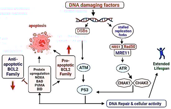 - Schumacher, B.; Pothof, J.; Vijg, J.; Hoeijmakers, J.H. The central role of DNA damage in the ageing process. Nature 2021, 592, 695–703. [Google Scholar] [CrossRef]