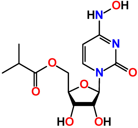 - Paymode, D.J.; Vasudevan, N.; Ahmad, S.; Kadam, A.L.; Cardoso, F.S.P.; Burns, J.M.; Cook, D.W.; Stringham, R.W.; Snead, D.R. Toward a Practical, Two-Step Process for Molnupiravir: Direct Hydroxyamination of Cytidine Followed by Selective Esterification. Org. Process Res. Dev. 2021, 25, 1822–1830. [Google Scholar] [CrossRef]