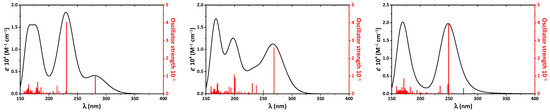 | HOMO−1 → LUMO+10 (7.3%) | 201.1 | 0.0902 | HOMO−1 → LUMO+2 (50.2%) | ||