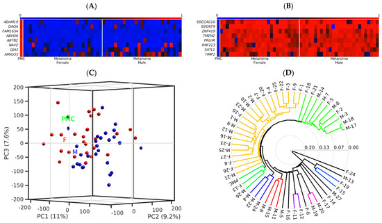 - Koga, Y.; Pelizzola, M.; Cheng, E.; Krauthammer, M.; Sznol, M.; Ariyan, S.; Narayan, D.; Molinaro, A.M.; Halaban, R.; Weissman, S.M. Genome-wide screen of promoter methylation identifies novel markers in melanoma. Genome Res. 2009, 19, 1462–1470. [Google Scholar] [CrossRef]