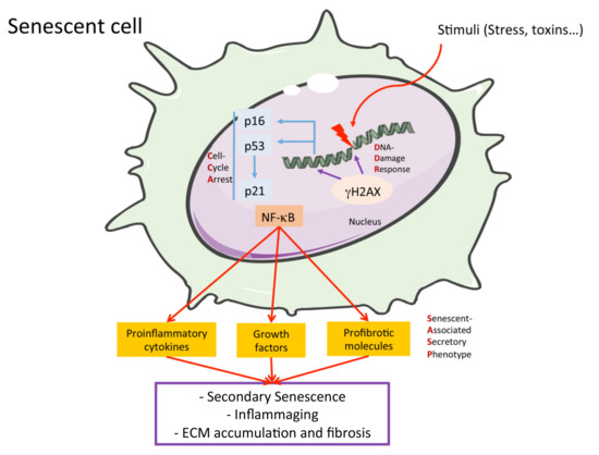 - Muñoz-Espín, D.; Serrano, M. Cellular senescence: From physiology to pathology. Nat. Rev. Mol. Cell Biol. 2014, 15, 482–496. [Google Scholar] [CrossRef]