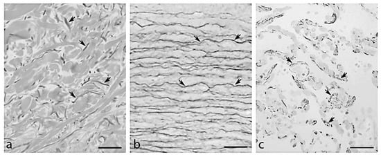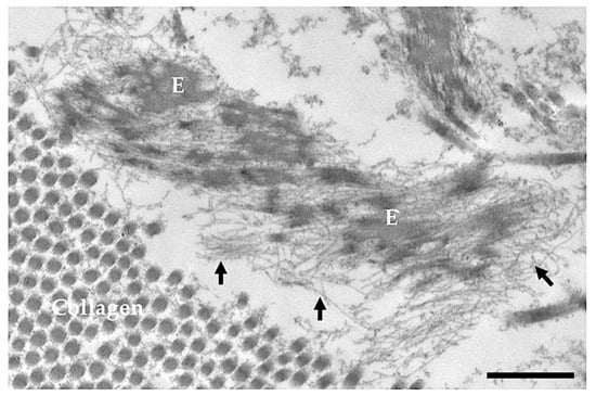 - Kielty, C.M.; Sherratt, M.J.; Shuttleworth, C.A. Elastic fibres. J. Cell Sci. 2002, 115, 2817–2828. [Google Scholar] [CrossRef]