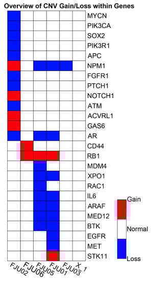 The occurrence of CNVs within genes among five Taiwanese patients with PAC (CNV: copy number variation, PAC: pancreatic adenocarcinoma).