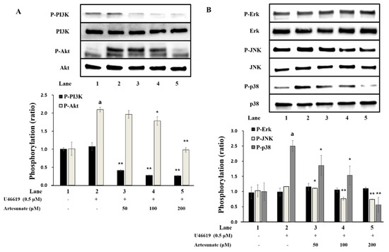 2.6. Effects of Artesunate on Phosphorylation of PI3K/Akt and MAPK