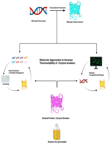 However, the application of enzymes as gel breakers in the upstream oil and gas industry is limited due to thermostability issues. Many enzymes cannot work under extreme temperatures of oil wells or reservoirs. The purpose of this review article is to briefly overview the most recent enzyme engineering techniques (Figure 1) such as direct evolution and rational design, and how these engineering techniques can be employed to increase the thermostability of enzyme breakers to work under extreme temperatures of deep rock cracks to induce the permeability of oil and gas.