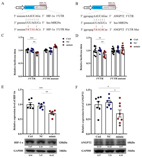 2.4. miR-29a Targeted the 3′-UTR of HIF-1a and ANGPT2