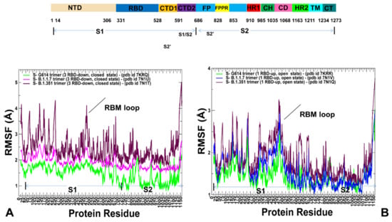 2.1. Atomistic Modeling and Simulations Reveal Distinct Conformational Flexibility Patterns of the SARS-CoV-2 S Mutant Variants