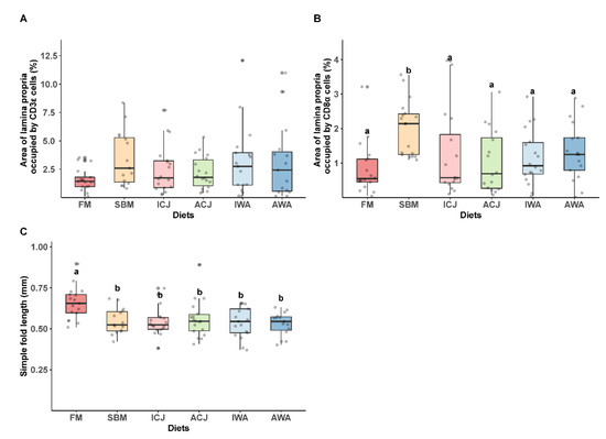 - Van den Ingh, T.; Krogdahl, Å.; Olli, J.; Hendriks, H.; Koninkx, J. Effects of soybean-containing diets on the proximal and distal intestine in Atlantic salmon (Salmo salar): A morphological study. Aquaculture 1991, 94, 297–305. [Google Scholar] [CrossRef]
