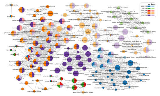 - Merico, D.; Isserlin, R.; Stueker, O.; Emili, A.; Bader, G.D. Enrichment map: A network-based method for gene-set enrichment visualization and interpretation. PLoS ONE 2010, 5, e13984. [Google Scholar] [CrossRef]