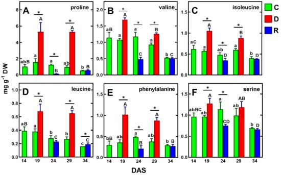 - Yadav, A.K.; Carroll, A.J.; Estavillo, G.M.; Rebetzke, G.J.; Pogson, B.J. Wheat drought tolerance in the field is predicted by amino acid responses to glasshouse-imposed drought. J. Exp. Bot. 2019, 70, 4931–4947. [Google Scholar] [CrossRef] [PubMed]
