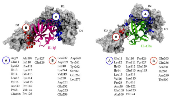 - Evans, R.J.; Bray, J.; Childs, J.D.; Vigers, G.P.A.; Brandhuber, B.J.; Thompson, R.C.; Eisenberg, S.P.; Skalicky, J.J. Mapping receptor binding sites in Interleukin (IL)-1 receptor antagonist and IL-1β by site-directed mutagenesis. J. Biol. Chem. 1995, 270, 11477–11483. [Google Scholar] [CrossRef] [PubMed] [Green Version]