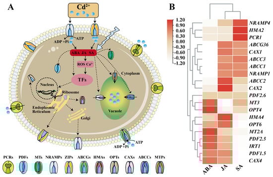 - Sun, W.; Zhan, J.; Zheng, T.; Wu, G.; Xu, H.; Chen, Y.; Yao, M.; Zeng, J.; Yan, J.; Chen, H. Involvement of several putative transporters of different families in β-cyclocitral-induced alleviation of cadmium toxicity in quinoa (Chenopodium quinoa) seedlings. J. Hazard. Mater. 2021, 419, 126474. [Google Scholar] [CrossRef]