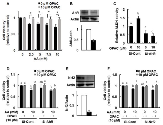 2.4. OPAC Protected the Cells from the Acetaldehyde-Induced Toxicity in an AhR-Dependent Manner