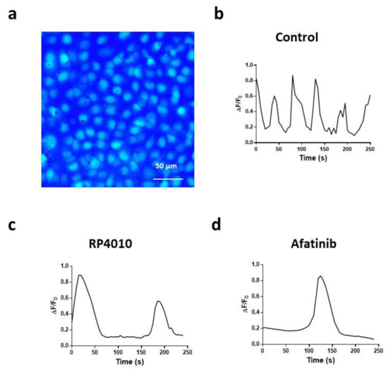 2+ measurement, we evaluated the inhibitory effect of afatinib and RP4010 on intracellular Ca