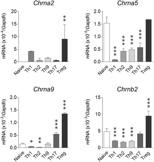 2.2. Expression of nAChRs on T Cell Subsets