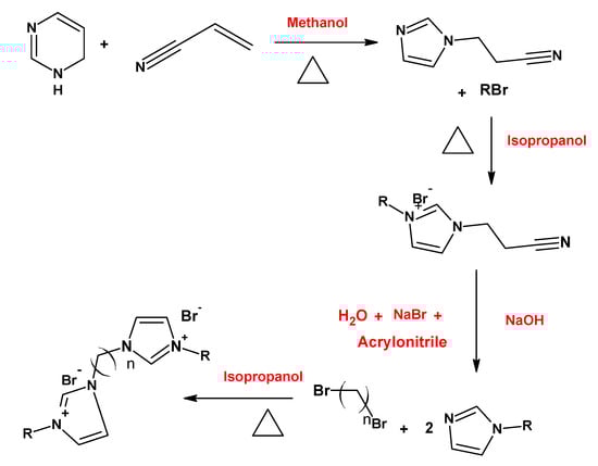 Route of synthesis of the imidazolium gemini surfactants synthesized by Ren et al. [].