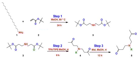 - Al Muslim, A.; Ayyash, D.; Gujral, S.S.; Mekhail, G.M.; Rao, P.P.N.; Wettig, S.D. Synthesis and characterization of asymmetrical gemini surfactants. Phys. Chem. Chem. Phys. 2017, 19, 1953–1962. [Google Scholar] [CrossRef]