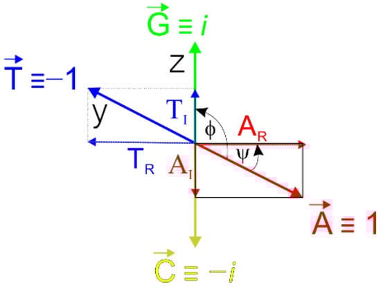 where r1 and r2 are variable constants (radius), and the difference α–β expresses the angle φ between vectors A and G or C and T. If the angular difference is greater than 90° than angle ψ, then the contribution of the imaginary components for A directly reduces the score in the imaginary plane (xz), Figure 4.
