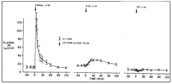 - Pfeifer, M.A.; Halter, J.B.; Porte, D., Jr. Insulin secretion in diabetes mellitus. Am. J. Med. 1981, 70, 579–588. [Google Scholar] [CrossRef]
