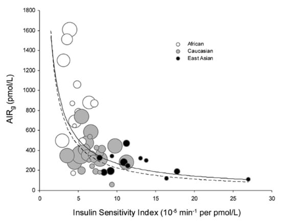 - Kodama, K.; Tojjar, D.; Yamada, S.; Toda, K.; Patel, C.J.; Butte, A.J. Ethnic differences in the relationship between insulin sensitivity and insulin response: A systematic review and meta-analysis. Diabetes Care 2013, 36, 1789–1796. [Google Scholar] [CrossRef]