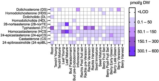 - Tarkowská, D.; Novák, O.; Oklestkova, J.; Strnad, M. The determination of 22 natural brassinosteroids in a minute sample of plant tissue by UHPLC–ESI–MS/MS. Anal. Bioanal. Chem. 2016, 408, 6799–6812. [Google Scholar] [CrossRef]