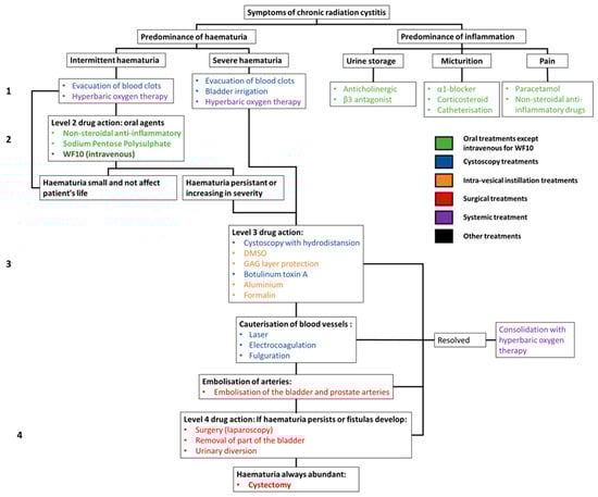 Decision tree for the management of chronic radiation cystitis and its treatment.
