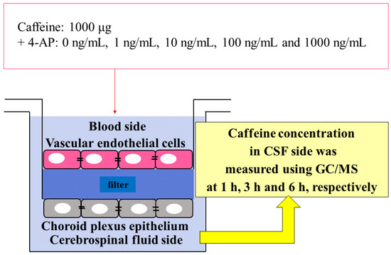 The results of the culture experiments showed that the concentration of caffeine transferred to the CSF side decreased in inverse correlation with the concentration of 4-AP added and increased in proportion to the time elapsed after the addition of 4-AP. Although the concentration of caffeine passing through the BCSFB increases with time, the amount decreases inversely proportionally since the concentration of 4-AP inhibits the transfer of caffeine to the CNS through the BCSFB.
