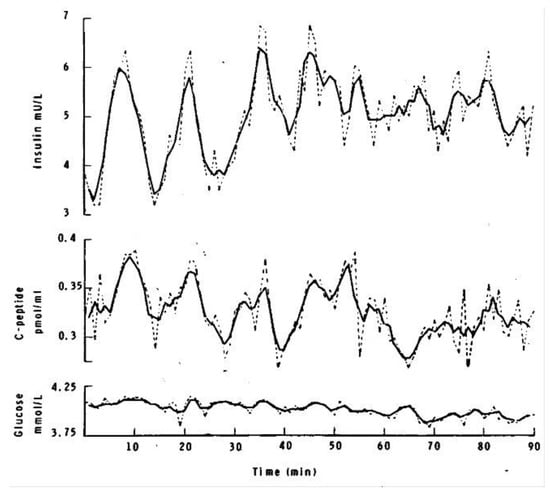 Ten years earlier, Porksen, et al., discussed pulsatile insulin secretion and reported that, in type 2 diabetes mellitus, both IR and impairment of insulin secretion characterizes the metabolic problem of the disease. High frequency of insulin oscillations in these patients corresponds to serial secretory insulin bursts [].
