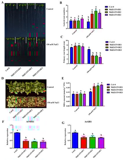 2.4. Cis-Elements Analysis of MdZAT5 Promoter Sequence and Expression Patterns of MdZAT5