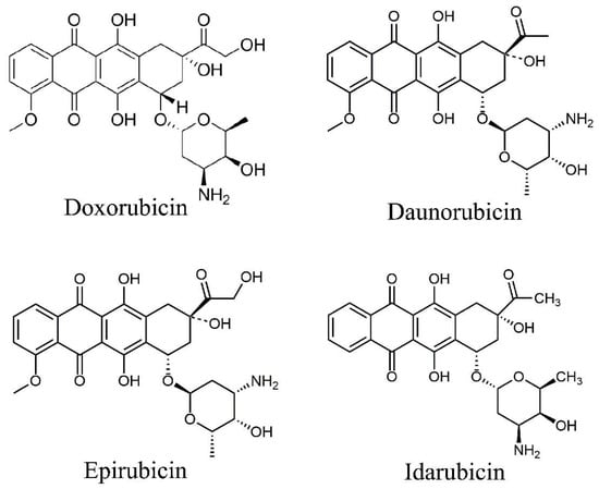 - Minotti, G.; Menna, P.; Salvatorelli, E.; Cairo, G.; Gianni, L. Anthracyclines: Molecular Advances and Pharmacologie Developments in Antitumor Activity and Cardiotoxicity. Pharmacol. Rev. 2004, 56, 185–229. [Google Scholar] [CrossRef] [PubMed]