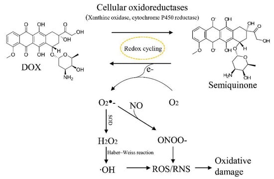 - Davies, K.J.A.; Doroshow, J.H. Redox Cycling of Anthracyclines by Cardiac Mitochondria. I. Anthracycline Radical Formation by NADH Dehydrogenase. J. Biol. Chem. 1986, 261, 3060–3067. [Google Scholar] [CrossRef]