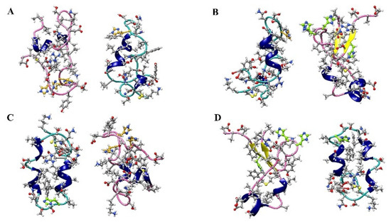 - Daura, X.; Gademann, K.; Jaun, B.; Seebach, D.; van Gunsteren, W.F.; Mark, A.E. Peptide Folding: When Simulation Meets Experiment. Angew. Chem. Int. Ed. 1999, 38, 236–240. [Google Scholar] [CrossRef]