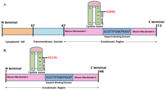 Previous studies showed that the CX3C chemokine motif present in the central conserved region of G protein bound with the CX3CR1 receptor present on HAE cells [16]. The alterations of amino acid in this region are likely to affect the binding of the virion to the host cell receptors, therefore preventing RSV infection [37]. Based on this idea and reported studies, we mutated the positively charged lysine (K) amino acid residue to the neutrally charged alanine (A) in the CX3C motif. This substitutional mutation changed the CX3C motif (CK183SIC to CA183SIC) with respect to the full–length G protein (Figure 1A). Since we used the ectodomain region of the G protein for the present study, the mutated CX3C motif position was CK117SIC to CA117SIC (Figure 1B). We mutated the positively charged amino acid to the neutral amino acid to disrupt the interaction of the G protein with the host cell membrane. The previous study reported that the positively charged amino acids of the G protein interacted with negatively charged heparin/heparin sulfate molecules present on the host cell receptors. Therefore, we chose to mutate the lysine residues to alanine in the CX3C motif of the G protein.