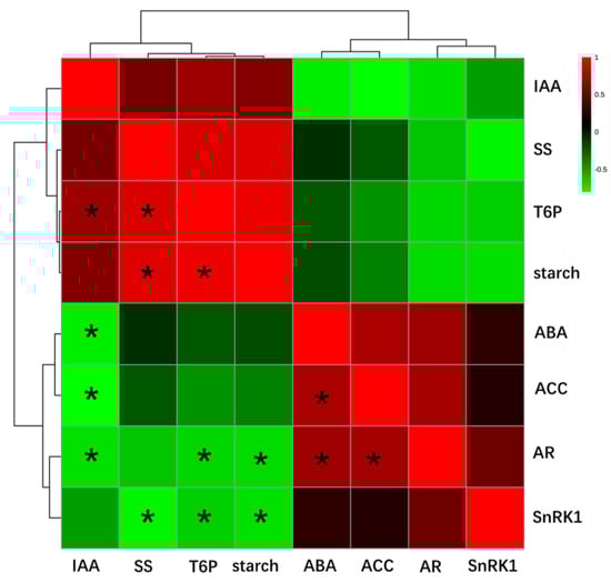 | Soluble Sugars | Starch | ABA | ACC | ||