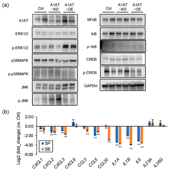 2.2. A1AT Regulates Activation of p38MAPK and JNK and Expression of Inflammatory Cytokines in Trophoblasts