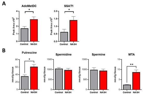 2.5. Polyamine Metabolism Is Activated in NASH, Causing Flux and Oxidative Stress