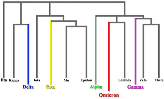 - Majumdar, S.; Sarkar, R. Mutational and Phylogenetic Analyses of the Two Lineages of the Omicron Variant. J. Med. Virol. 2022. [Google Scholar] [CrossRef]