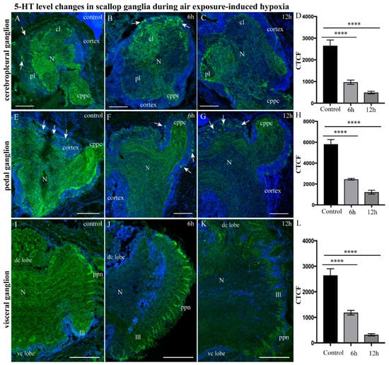 2.3. Impact of Hypoxia on Neurotransmitter Distribution in Scallop CNS
