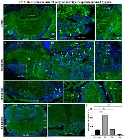 2.3.3. uNOS-lir Distribution after Hypoxia Exposure